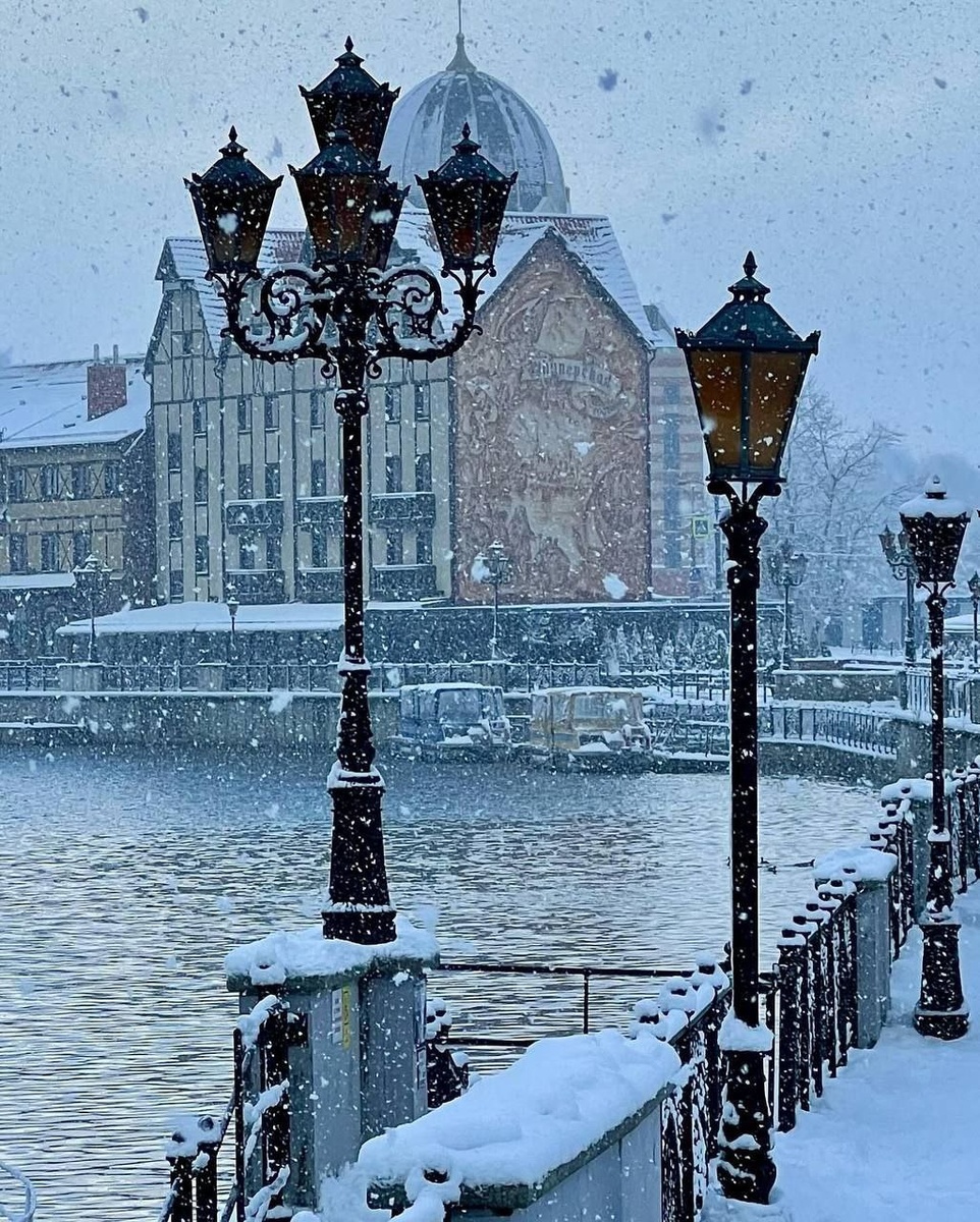 ❄️Калининград❄️ Тот самый момент, когда осень окончательно сдает свои полномочия зиме - выпадает первый снег ❄️ ❄️ Первый снег, как самый дорогой гость, бережно укрыл черепичные крыши Рыбной деревни, припорошил шпили Кафедрального собора и заставил танцевать в воздухе хлопья над фортами. 📍Это идеальное время, чтобы: ✔️Найти самую уютную кофейню с видом на Преголю и согреться какао. ✔️Отправиться на фотоохоту за заснеженными Кёнигсбергскими костелами. ✔️Прогуляться по тихим, побелевшим улицам Амалиенау и насладиться почти сказочной тишиной. Первый снег в Калининграде — это не просто погода. Это обещание скорого Рождества, уютных вечеров и новой, зимней красоты самого западного региона России. 📌Калининград #Калининград 📷 Ольга Камец 🕊Поддержать канал голосом ✈️ Хорошо там, где нас нет