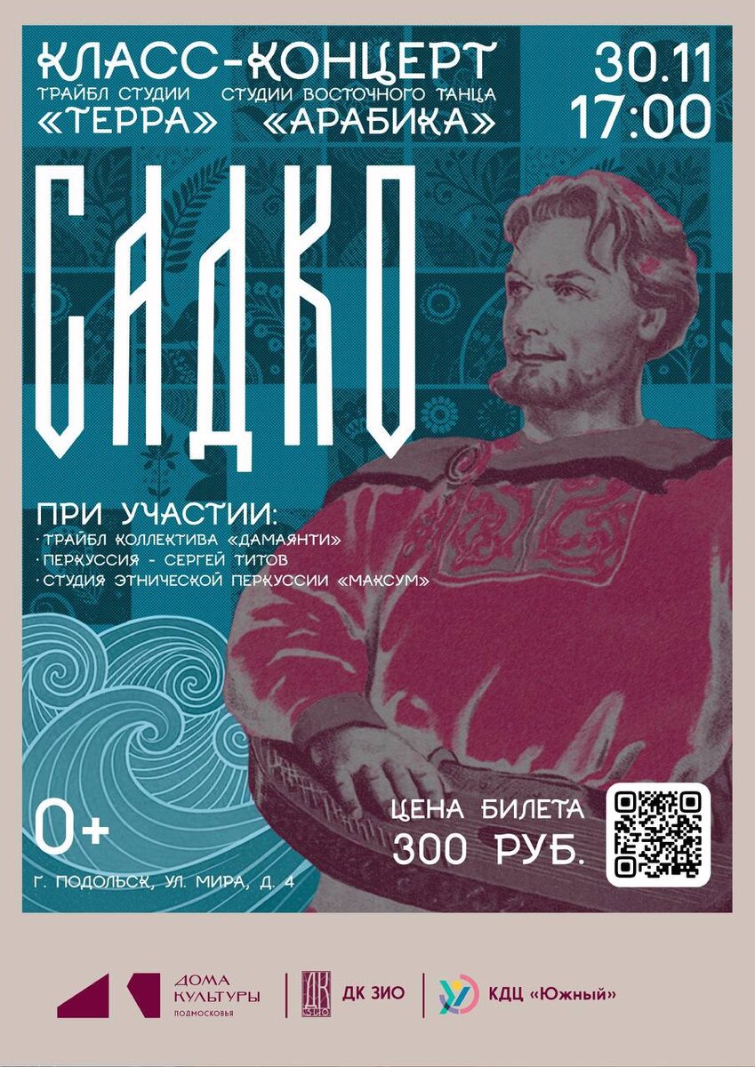 ✨ Класс-концерт «Садко» Трайбл-студия «TERRA» и студия восточного танца «АРАБИКА» представляют уникальное шоу по мотивам новгородской былины! ✅Увидите отважного гусляра Садко и прекрасную царевну Ильмень 👏Погрузитесь в мир волшебных русалок, викингов и танцовщиц 🎪 Станьте свидетелями древних славянских обрядов в современном прочтении Украшением концерта станет живой зажигательный ритм индийских барабанов в исполнении студии этноперкуссии «Максум»,мультиперкуссит Сергей Титов, а также трайбл коллектив «Дамаянти». 🚫 Возраст: 0+ 📆 30.11.2025 🕒 17:00 🏢 ДК ЗИО 📍 г. Подольск, ул. Мира, 4 💰 Цена: 300 ₽ 🎫 Купить билет: https://clck.ru/3QBQ77 ⭐Поддержать канал голосом 🍰Где поесть в Подольске ✅ Мероприятия Подольск https://dzen.ru/id/66ed500f7b5671493eca3fd6 http://vk.com/podolsk_events http://dzen.ru/podolsk_events