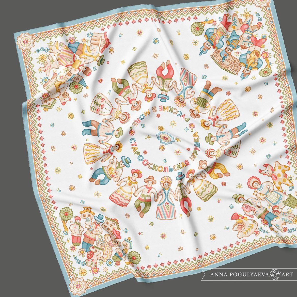 На этой неделе платок показала заказчица - значит и мне тоже можно! Мой принт для платка, посвященный старооскольской глиняной игрушке