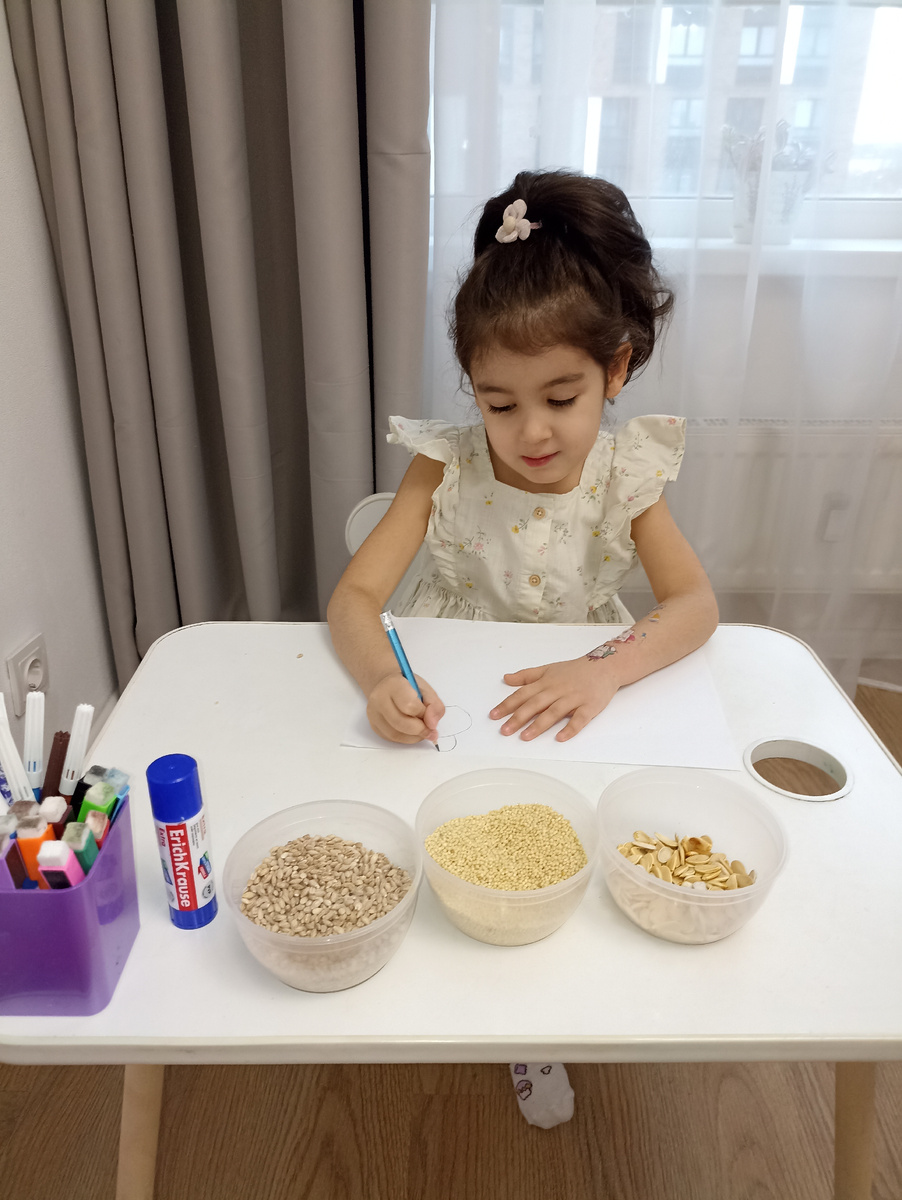 Сегодня я решила занять Милену крупами 😃. Специально для поделок и игр я купила самые дешевые крупы и сохранила семечки от тыквы) Сначала она нарисовала цветочки. Потом обводила цветы клеем и сыпала крупу и семечки. В процессе Милена просто играла с крупами. Рассыпала, потом все это обратно собирала) Цветочки решила ещё разукрасить красками. Если бы у нас были курочки или цыплята, они бы нам сегодня очень помогли 🤣 Потому что после того, как цветы были готовы, по всему полу было рассыпано пшено и перловка. Плавно от одного занятия перешли на другое. Ребенок занимался своими делами, а мама своими 🤣 Все были при деле. После уборки, Миля решила нарисовать рисунки красками. Пока она рисовала, я спокойно приготовила обед. Убирались мы вместе. У неё есть свой детский набор для уборки, иногда она им пользуется) После уборки и рисования, пообедали и решили посмотреть мультик Снежная королева. Я сама как-будто погрузилась в детство. С удовольствием посмотрела мультик и п