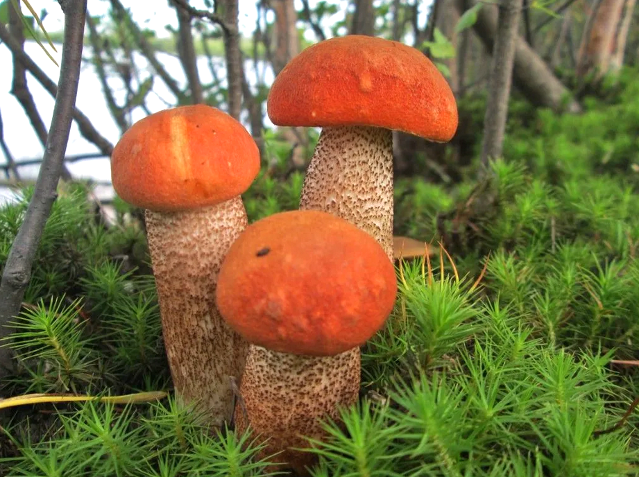 Подосиновик красный (Leccinum aurantiacum): Самый известный и распространенный вид. Отличается ярко-красной или оранжевой шляпкой и красновато-бурыми чешуйками на ножке.