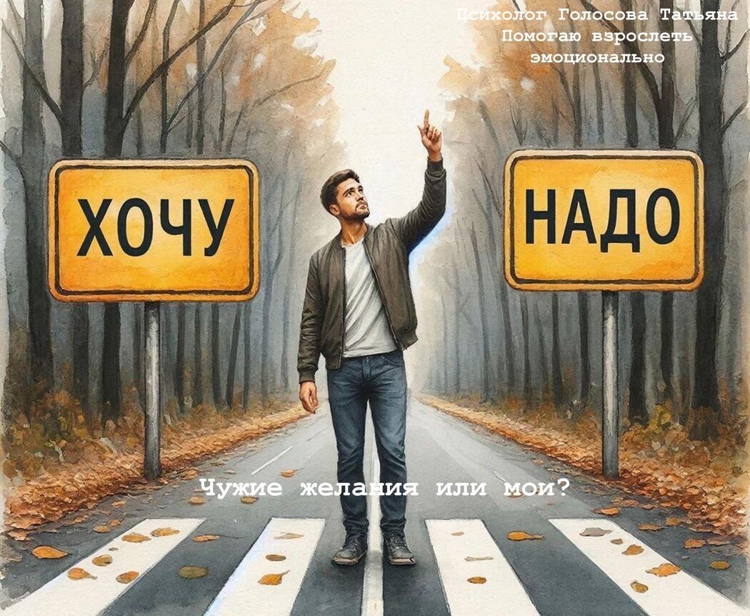Ко мне приходят клиенты с ощущением, что их жизнь "не их собственная". Они делают все "как положено", но при этом недовольны собой и своей судьбой. Рано или поздно у них возникает вопрос: "Мои это желания или родителей?" В этой статье хочу рассказать, на какие критерии можно опираться, для того, чтобы определить где ваши желания, а где родителей. Довольно думать о том, чего хотят другие! Не думай о том, чего хочу я, чего хочет тот парень, твои родители... Чего хочешь ты? Наши настоящие желания часто остаются скрытыми под слоем родительских ожиданий, и этому есть несколько глубоких психологических причин.