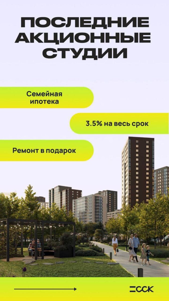 Осталось совсем немного акционных студий, квартира с ремонтом и ставкой 3.5% на весь срок💜