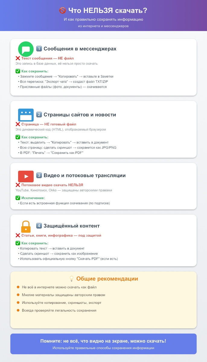 🚫 Что нельзя “скачать” и как правильно сохранять информацию из интернета и мессенджеров