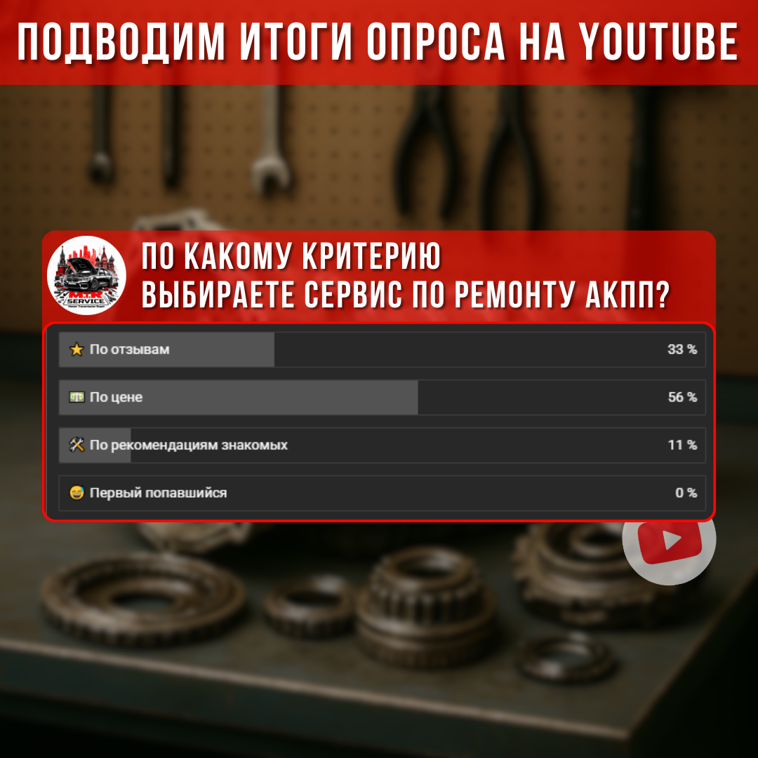 👋🏼 Друзья, на связи MTR Service! 🔎 По результатам опроса: больше половины выбирают по цене, треть - по отзывам, совсем немного - по рекомендациям. Мы видим привычную картину: деньги решают прежде, чем смотрят на качество и гарантии. ⚠️ Выбирать только по цене - риск. Низкая цена часто означает дешёвые или б/у запчасти, сокращённую диагностику, отсутствие реальной гарантии и скрытые доначисления при доработке. Такие практики приводят к повторным ремонтам и дополнительным расходам для владельца. 🛠️ Помните, что качественный ремонт начинается с полной диагностики и прозрачного расчёта при дефектовке - иначе это лотерея. Дефектовка показывает реальный объём работ и уменьшает риск сюрпризов после установки. 🤝 В MTR Serive мы работаем качественно, документируем этапы и держим адекватные цены без накрутки. 📝 Записывайтесь на диагностику АКПП! Гарантия до 6 месяцев на выполненные работы. ☎️ Пишите в WhatsApp: Wa.me/79958474755