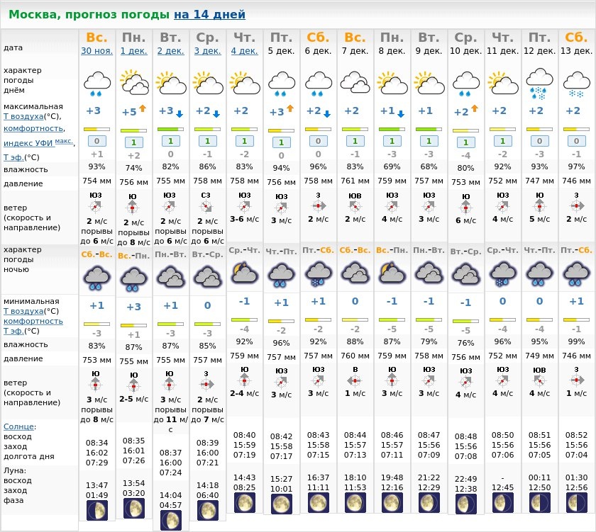 Прогноз погоды на 14 дней