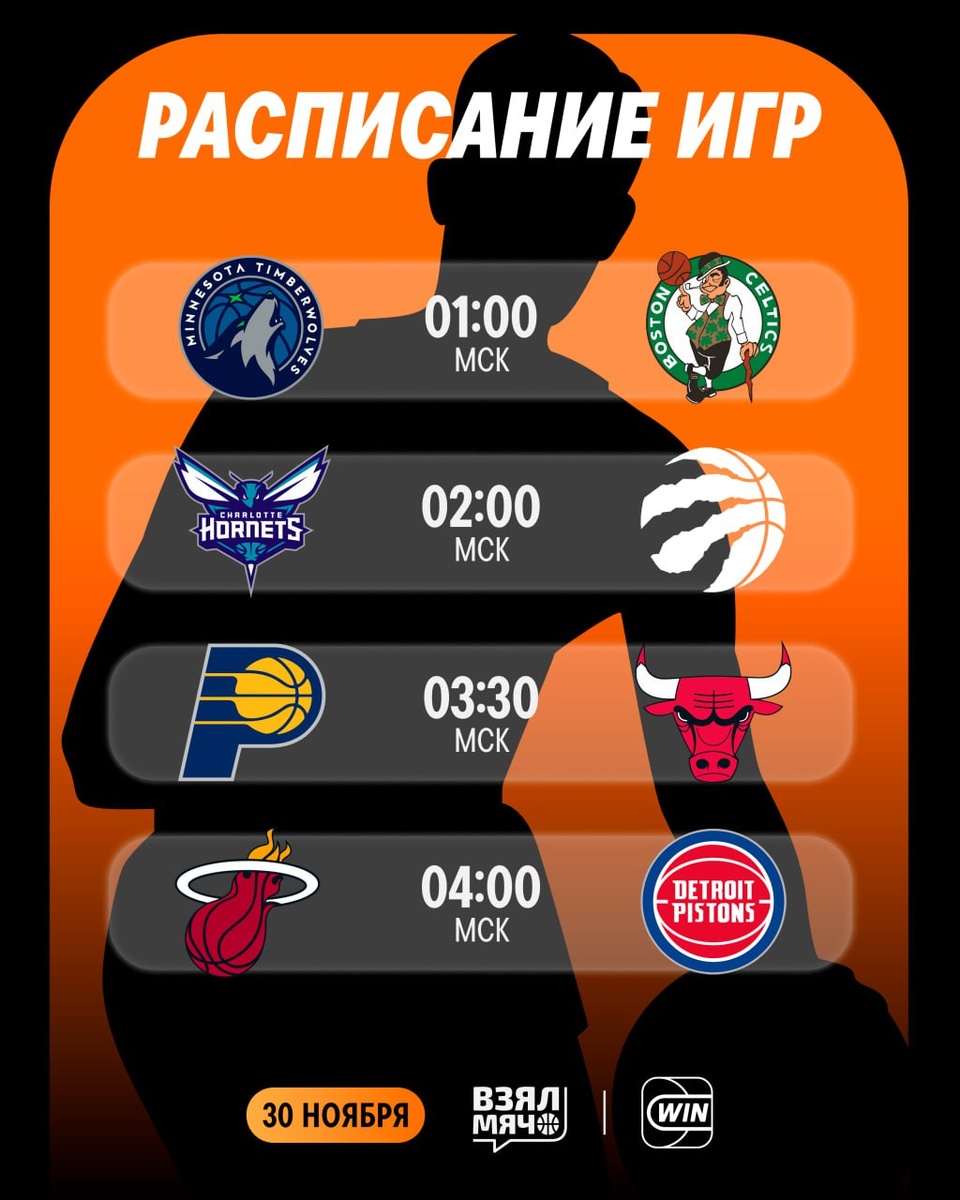 😝 Лучший баскетбол на планете продолжается! Не успели мы отойти от 11 игр прошлой ночи, как уже готовимся показать 8 матчей нового игрового дня! Где будет самое интересное противостояние по вашему мнению? 01:00 | Миннесота — Бостон 🎙 Матвей Юдкин 02:00 | Шарлотт — Торонто 🎙 Андрей Протасов 03:30 | Индиана — Чикаго 🎙 Артём Тихонов 04:00 | Майами — Детройт 🎙 Дмитрий Хамидулин 04:00 | Милуоки — Бруклин 🎙 Матвей Юдкин 04:30 | Голден Стэйт — Новый Орлеан 🎙 Александр Зотеев 05:00 | Финикс — Денвер 🎙 Сергей Абаев 06:00 | Даллас — Клипперс 🎙 Андрей Протасов Прямые трансляции всех матчей смотрите в нашей группе ВК! 🏀 ПОДПИШИСЬ — ЗДЕСЬ ЖИВЁТ БАСКЕТБОЛ!