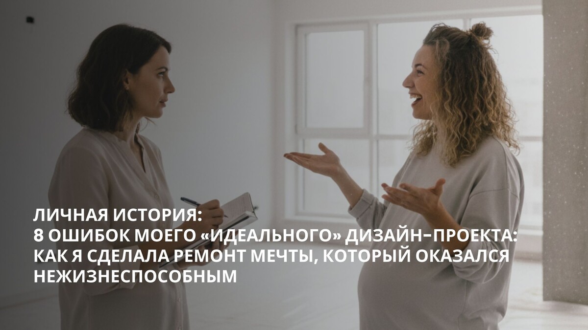 Привет! На связи Света, и я хочу поделиться историей о том, как в 2019 году я, будучи молодой, уверенной в себе и, конечно, беременной, решила сделать идеальный дизайн-проект для своей первой квартиры. Как вы понимаете, эта комбинация факторов гарантировала нервный тик от слова «ремонт» у моего мужа и по сей день. Я думала, что продумала всё. На деле - заплатила дважды за красоту, которая не работает. У меня был очень подробный бриф для дизайнера: Тогда мне казалось: «Я очень продуманная». Дизайнер действительно сотворил магию: красивые рендеры, идеально вписанные акценты и даже ванна вместо душа (за что ему спасибо!). Моим девизом было: «Делаем всё, как в проекте! Потому что проект делали умные люди с развитым чувством вкуса». Угадайте, кто пожалел о части решений, спустя 5 лет? Да, я. Прошло полгода, ремонт закончен, ребенок родился. И тут началось. Внезапно выяснилось, что младенцы - это очень громко. Наша рабочая зона в проходной, нарисованная на рендерах как «уютное место творчес