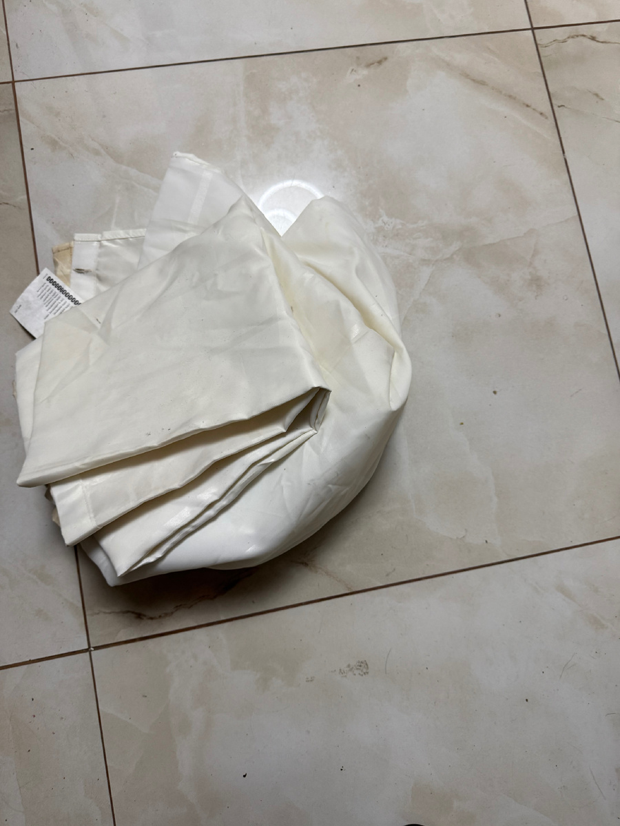 Сегодня я отправила на выход старую штору для ванной от IKEA. Вначале она служила по назначению, затем я использовала ее для накрывания предметов интерьера во время ремонтных работ. После этого хранила на всякий случай, вдруг мне пришлось бы паковать что-нибудь крупногабаритное. Но за 2 года это событие так и не наступило, соответственно, я считаю возможным ее выкинуть.