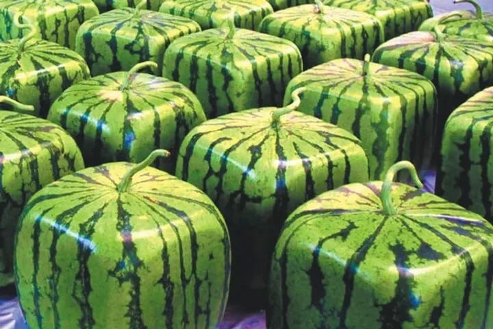 Художник-садовод Томоюки Оно предложил метод выращивания квадратных арбузов: он разработал прозрачные контейнеры, в которые помещали