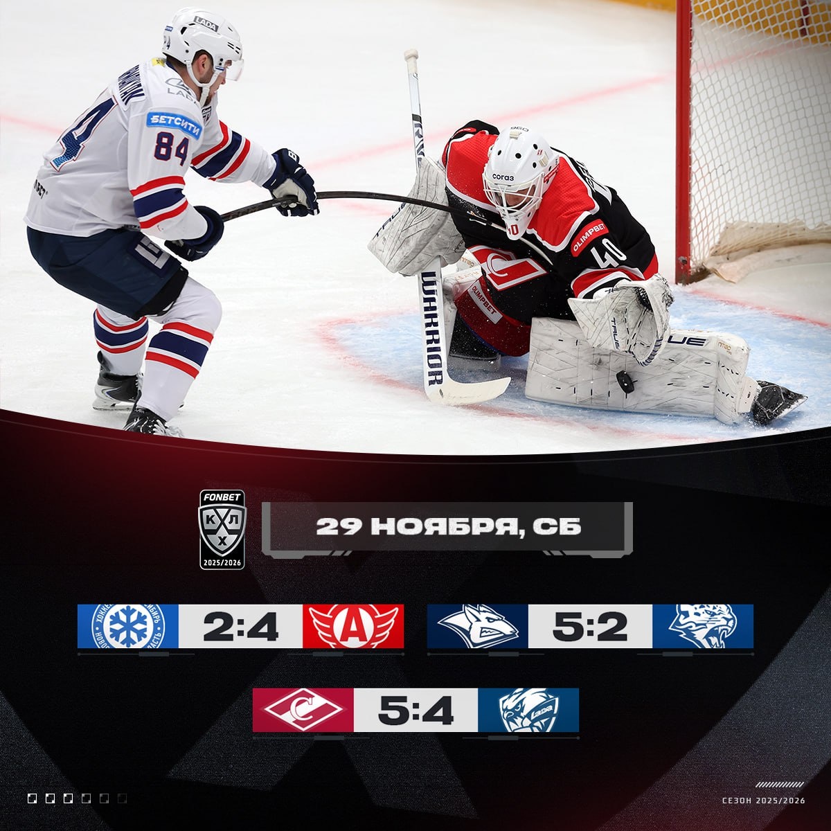 Хоккейный вечер оказался разным по структуре и настроению — где-то вязким и аккуратным, где-то быстрым и раскрепощённым, а местами вообще похожим на эмоциональную дуэль. Команды шли к победам разными путями, и именно в этих контрастах рождалась общая драматургия дня. Автомобилист — Сибирь 4:2 Игра про эффективность и чувство момента. Уральцы нанесли всего 18 бросков в створ, но в их действиях не было ни суеты, ни лишней спешки. Денежкин оформил дубль и стал центром всех ключевых атак. Сибирь пыталась раскачать темп, но Автомобилист, словно опытный дирижёр, удерживал игру в нужном диапазоне. Металлург — Барыс 5:2 Партия, сыгранная с уверенностью и пониманием пространства. Металлург давил не старанием, а структурой — спокойно, постепенно, очень собранно. Дубль Канцерова лишь подчеркнул общую силу команды. Барыс пытался искать ходы, но магнитогорцы будто заранее читали каждый следующий шаг соперника. Спартак — Лада 5:4 Матч, который держал напряжение от начала и до сирены. Обе