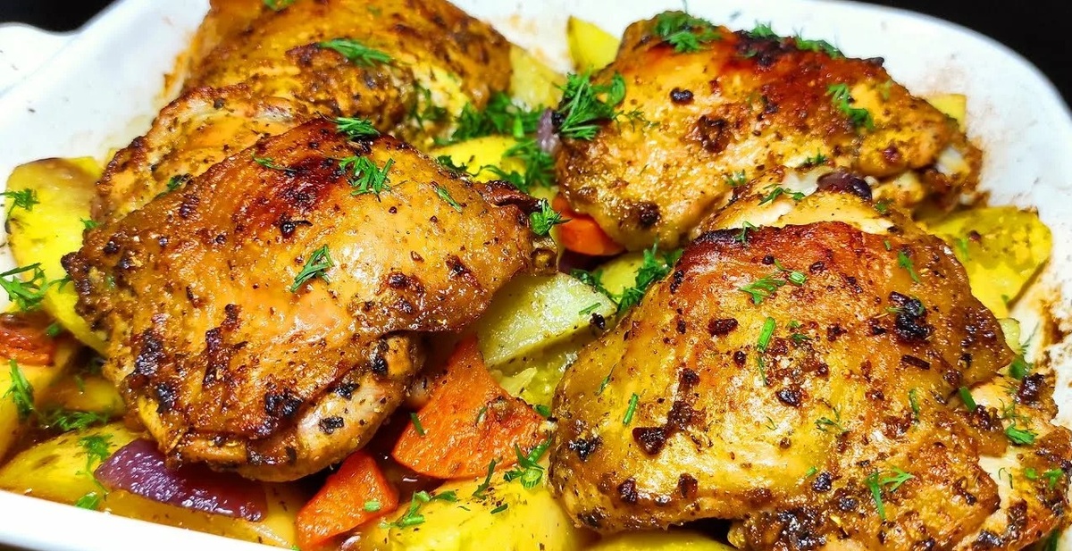 Когда томление заменяет запекание, а простые ингредиенты превращаются в блюдо с глубоким вкусом. Нежный картофель, пропитанный куриным соусом с чесноком и травами, — рецепт, где время и низкая температура делают всю работу за вас. Какие ингредиенты понадобятся Картофель — 1 кг (средние клубни) Куриные бедра — 4 шт. Лук репчатый — 2 шт. Чеснок — 5 зубчиков Куриный бульон — 400 мл Сметана — 200 г Тимьян свежий — 3 веточки Соль, перец, паприка — по вкусу Растительное масло — 3 ст.л. Пошаговый план действий Подготовьте основу. Картофель очистите, нарежьте кружками толщиной 1 см. Куриные бедра натрите смесью соли, перца и паприки. Секрет №1: Не промывайте нарезанный картофель — крахмал поможет загустить соус. Создайте слои. В толстостенную посуду выложите: лук полукольцами → картофель → куриные бедра кожей вверх. Секрет №2: Послойное выкладывание обеспечит равномерное пропаривание всех ингредиентов. Залейте соусом. Смешайте бульон со сметаной и давленым чесноком. Аккуратно влейте по краю п