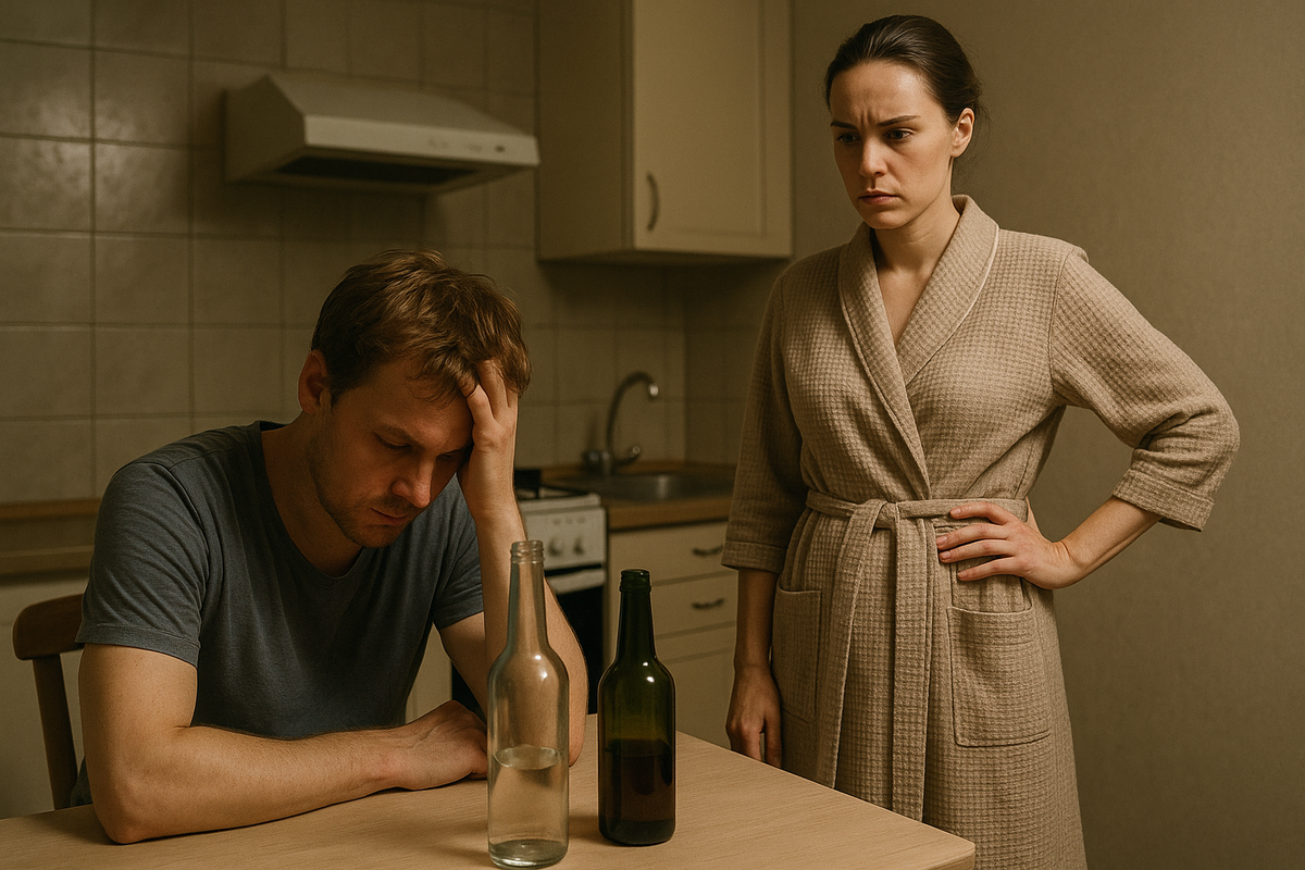 Саша вышел, вытирая руки полотенцем. Лицо усталое, опухшее, взгляд мутный. Он почти не пил раньше, но в последние месяцы бутылки исчезали из шкафа быстрее, чем зарплата со счета.