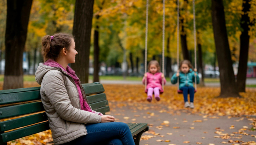 Сегодня я вела детей из сада. Мы шли через парк, и они, увидев качели, с визгом помчались вперед. Я присела на холодную скамейку, застегнула куртку и смотрела на них. На их смех, разносившийся в холодном воздухе. На то, как Лера пытается раскачать младшую сестру. Солнце, уже зимнее, низкое, слепило глаза, но грело.