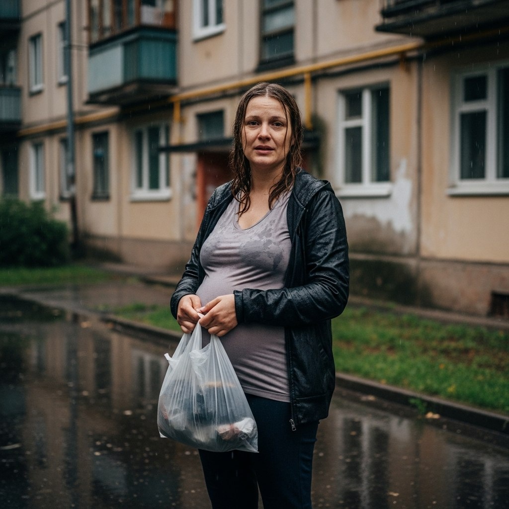 Дверной звонок прервал разговор. За дверью стояла Ольга – промокшая, с огромным животом и синяком под глазом. В руках – полиэтиленовый пакет с вещами.