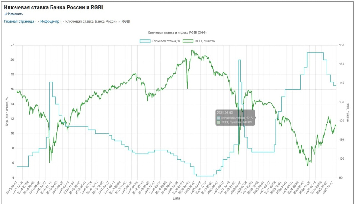 Как связаны ключевая ставка Банка России, индекс RGBI и доходность ОФЗ в вашем портфеле