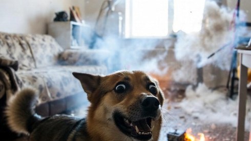 Собака в Новосибирске взорвала баллончик: пожар и выбитая дверь