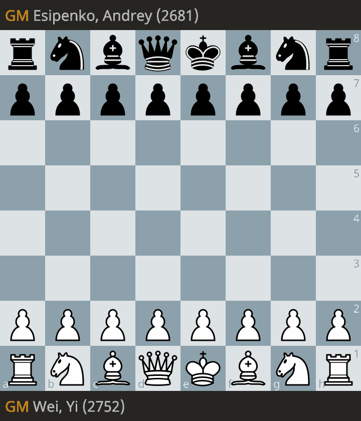 В полуфинале Кубка мира Андрею Есипенко предстояло сыграть с китайцем Вэй И. И уже в первой классической партии россиянину удалось завладеть инициативой, играя черным цветом.