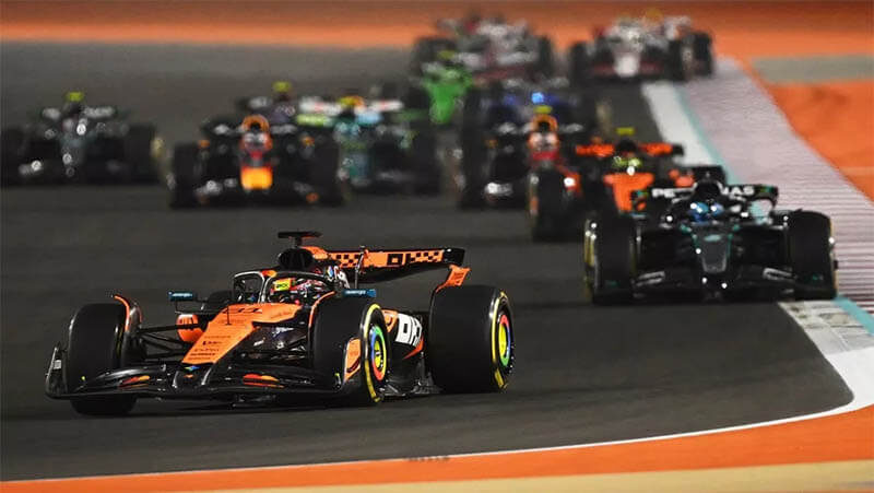 Оскар Пиастри из «McLaren» одержал победу в спринте Гран-при Катара, опередив Джорджа Рассела из «Mercedes», а Ландо Норрис опередил Макса Ферстаппена «Red Bull» в борьбе за третье место. Исход 19-кругового спринта на извилистой и скоростной трассе Лосаил в Дохе решился на старте: обладатель поула Пиастри сохранил лидерство, опережая Рассела и Норриса, а занявший четвертое место Фернандо Алонсо «Aston Martin» уступил позиции обоим пилотам «Red Bull» — Юки Цуноде и Ферстаппену. Затем Цунода предоставил своему напарнику, претендующему на титул, возможность занять четвёртое место, в то время как Ферстаппен бросился в погоню за Норрисом. Однако вскоре действующий чемпион мира начал жаловаться на повторяющиеся проблемы с подпрыгиванием, которые также досаждали ему в квалификации. В любом случае у Ферстаппена не было никаких шансов угрожать Норрису, поскольку грязный воздух в Дохе гарантировал, что все машины будут держаться друг от друга на расстоянии, а отсутствие пит-стопов практически г