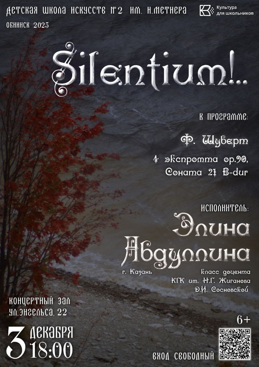 🎶3 декабря в 18:00 в ДШИ №2 им. Н. Метнера в Обнинске концерт студентки Казанской консерватории Элины Абдуллиной. Вход свободный. Обнинск, ул. Энгельса, 22 👍 Подписаться | Ваша реклама
