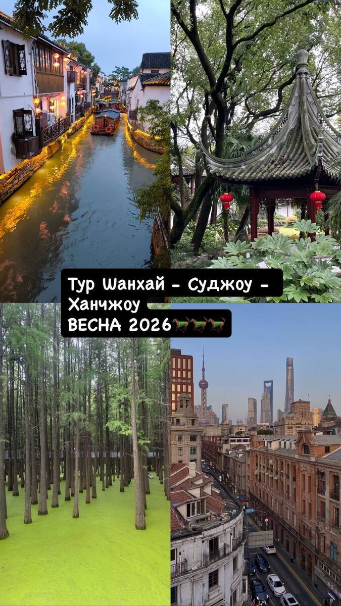 Китай, который влюбляет с первого взгляда: Ханчжоу, Сучжоу и Шанхай за 9 дней! 🌎 Привет, друзья-путешественники! Весна — идеальное время для путешествия, и мы приглашаем вас в незабываемый тур по самому сердцу Китая. Что нас ждет в этом приключении? 🌿 Поэзия Ханчжоу Мы начнем с озера Сиху, воспетого в легендах, поднимемся к пагоде Шести Гармоний и попробуем самые душистые улуны прямо на чайных плантациях Лунцзин! А вечерами нас будут ждать колоритные улочки с морем деликатесов. 🎋 Величие Сучжоу Погуляем по классическим китайским садам, которые находятся под охраной ЮНЕСКО, и прокатимся по древним каналам, за что Сучжоу называют «Восточной Венецией». 🌃 Огни и магия Шанхая Здесь нас ждет полное погружение в контрасты! Поднимемся на знаменитую башню «Восточная жемчужина» и отправимся на романтический круиз по реке. Пройдемся по Французскому Концессиону, посетим древний сад Юйюань и храм Нефритового Будды. И это еще не все! Даты тура: ВЕСНА 2026 - 28 марта - 4 апреля Почему и