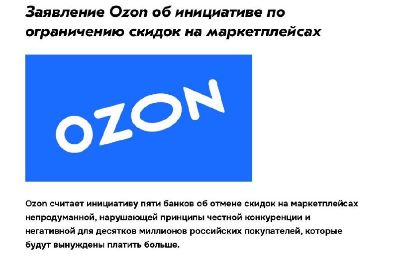 А о честной конкуренции между продавцами на площадке — они не хотят ничего сказать? Ozon красиво рассказывает про «честную конкуренцию» с банками, но почему-то упускает конкуренцию у себя дома. ✔ Где честность между китайскими и российскими продавцами, когда первым дают пониженные комиссии и приоритет в выдаче? ✔ Где честность между товарами Ozon и товарами селлеров, когда площадка сама же и продаёт, и ранжирует? ✔ Где честность в тарифах, когда мы платим «за пролистывание» — метрику, которую никто никогда не видел и невозможно проверить? Про это — тишина. Зато в спорах с банками Ozon вдруг становится большим защитником справедливости и конкуренции. Вот только конкуренция внутри самой площадки почему-то в этот набор ценностей не входит. Marketplace_biz - отдай свой буст каналу