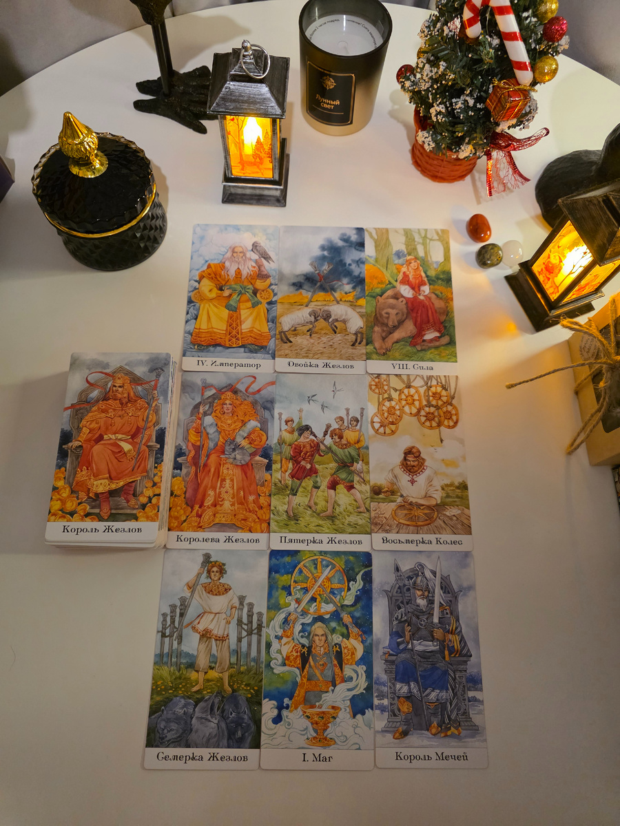 Император — “Я тут босс в нашем маленьком королевстве, готов управлять и защищать! 👑🛡️ Но не переживай, корону не сдуло.” 😎 2 Жезлов — “Планирую масштабные подвиги и приключения — и ты, конечно, в них главный соучастник!” 🌍🗺️ Сила — “У меня есть терпение и куча внутреннего льва, чтобы справиться с любыми твоими капризами... ну, почти со всеми 😅🦁” Королева Жезлов — “А ты — мой огонёк, мой вдохновитель и мотивация идти вперёд! 🔥👸” 5 Жезлов — “Иногда мы будем шутливо спорить, как два гладиатора на арене... Но все ради забавы и роста!” 🤺😂 8 Колес — “Я быстро двигаюсь вперёд, как на скейте с горы, чтобы ничего не упустить и быть рядом.” 🛹💨 7 Жезлов — “Готов отстаивать наши интересы и бороться за нас в любой ситуации — пусть никто не сунется!” 🥊🛡️ Маг — “У меня есть пара фокусов, чтобы удивлять тебя и делать нашу жизнь волшебной.” 🎩✨ Король Мечей — “Обещаю быть справедливым и честным, пусть меч истины будет острым!” ⚔️🤓 Король Жезлов — “И лидерствовать я умею — вмес