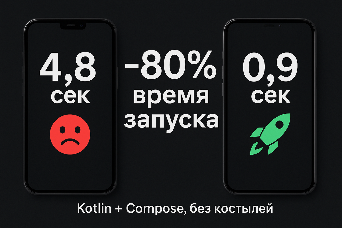И всё это — чистый Kotlin + Jetpack Compose, без ProGuard/R8-магии и без покупки нового железа. Сегодня покажу 5 трюков, которые дали мне лично –80–85% времени запуска в 2025 году. Готов? Погнали! Это убивает холодный старт!