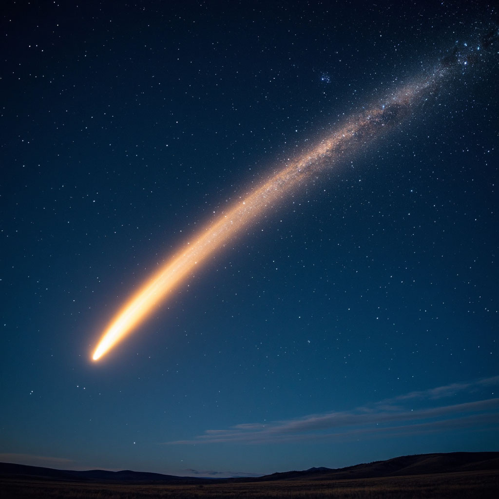 Комета — небольшое небесное тело, обращающееся вокруг Солнца по сильно вытянутой орбите. При сближении с Солнцем она образует яркую кому (газо‑пылевую оболочку) и иногда — эффектный хвост. Строение кометы Ядро — твёрдая «сердцевина» размером от сотен метров до десятков километров, состоит из льда, пыли и замёрзших газов (воды, метана, аммиака). При нагревании солнечными лучами ядро начинает испаряться, образуя кому. Солнечный ветер и излучение «вытягивают» частицы газа и пыли в длинный светящийся хвост, который всегда направлен от Солнца. Откуда берутся кометы? Большинство комет приходит из двух отдалённых регионов Солнечной системы: пояса Койпера (за орбитой Нептуна); облака Оорта (на границе системы). Почему кометы важны? Изучая кометы, учёные получают сведения о веществе ранней Солнечной системы: их ядра — своего рода «капсулы времени», сохранившие первозданный состав. Кроме того, кометы могли сыграть роль в доставке на Землю воды и органических молекул. Видимые невооружённым глазо