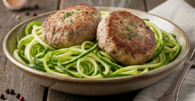 Котлеты из говядины на пару с кабачковой "лапшой" • Чем полезно: Очень легкий и нежный ужин, который не нагружает ЖКТ. • Ингредиенты: 🔠Фарш из постной говядины: 150 г 🔠Лук: 1/2 шт. 🔠Кабачок: 1 шт. 🔠Оливковое масло: 1 ч. л. 🔠Чеснок: 1 зубчик 🔠Соль, перец • Приготовление: 1. Смешайте фарш с измельченным луком, солью и перцем. 2. Сформируйте 2-3 котлеты и приготовьте на пару (20-25 минут). 3. Кабачок нарежьте "лапшой" с помощью спиралайзера или овощечистки. 4. На сковороде на масле быстро обжарьте измельченный чеснок (30 секунд). 5. Добавьте кабачок и готовьте, помешивая, 1-2 минуты, чтобы он остался хрустящим. 6. Подавайте паровые котлеты с "лапшой" из кабачка.