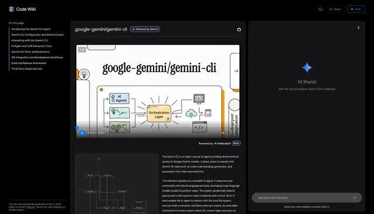 🚀 Новый инструмент от Google! 💡 Google представил Code Wiki — это инструмент, который превращает любой репозиторий в динамическую вики по коду. Он использует Gemini для автоматического создания структуры, генерации описаний модулей, классов и функций. Также он рисует архитектурные и последовательностные диаграммы. Всё это обновляется после каждого коммита! 🛠️ Внутри есть чат на базе Gemini, где можно задавать вопросы и получать ответы, привязанные к вашему коду. Это как NotebookLM, но для кода: он превращает репозиторий в живой учебник и навигатор по проекту. Тестируйте инструмент тут: https://codewiki.google/ #productivity #coding #ИИ #Google #CodeWiki #Gemini #программирование #инструменты #технологии