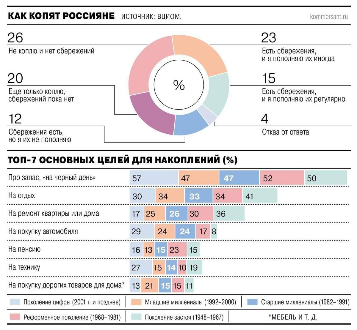 ⚡️Больше четверти россиян не имеют никаких сбережений из-за низких доходов и инфляции.