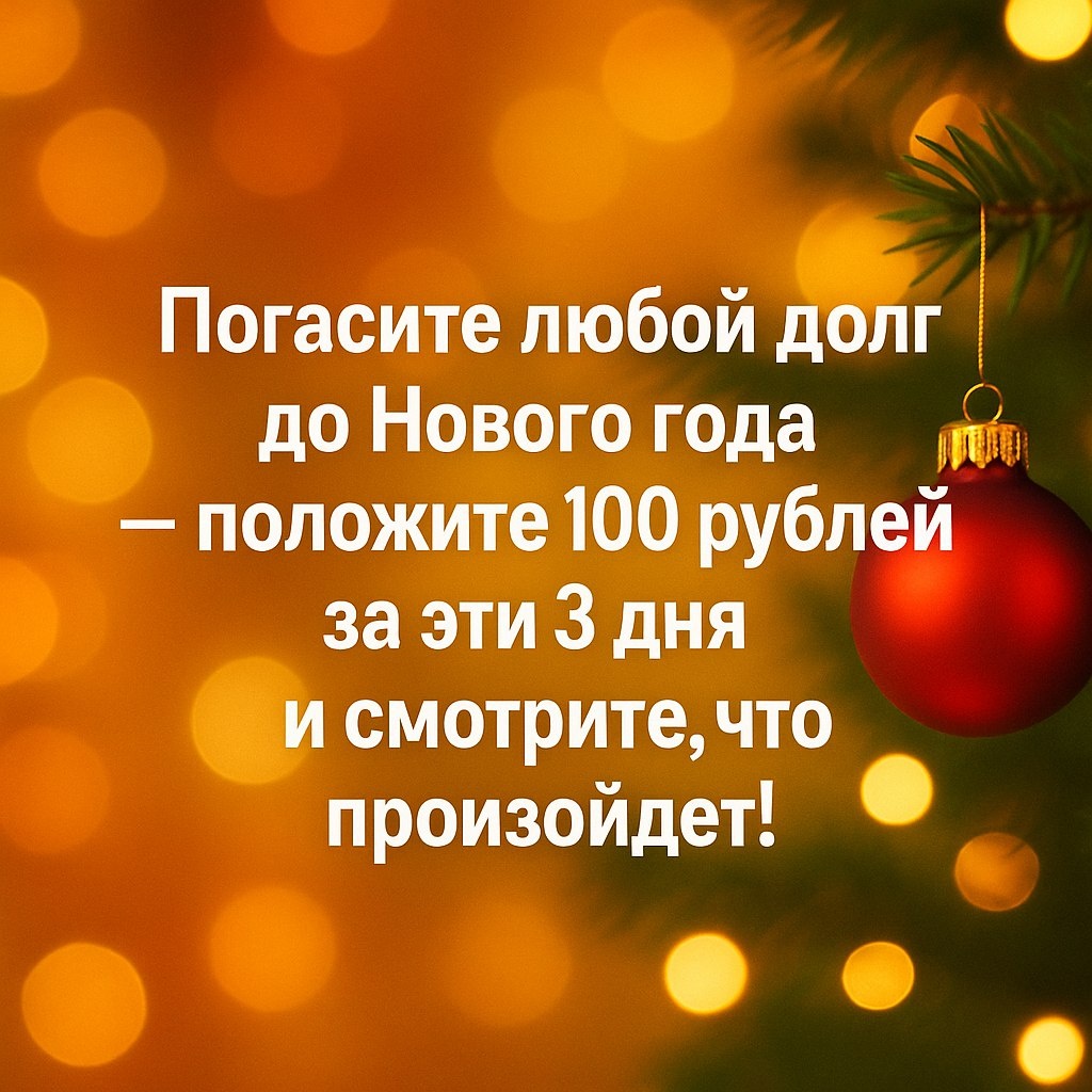 Я искренне вас поддерживаю, дорогие мои. Пусть декабрь будет вашим прощанием с прошлым и встречей с новым, пусть любая сумма, внесённая на долг в эти три волшебных дня, работает для вас, как семя, дающее урожай радости, процветания и спокойствия.