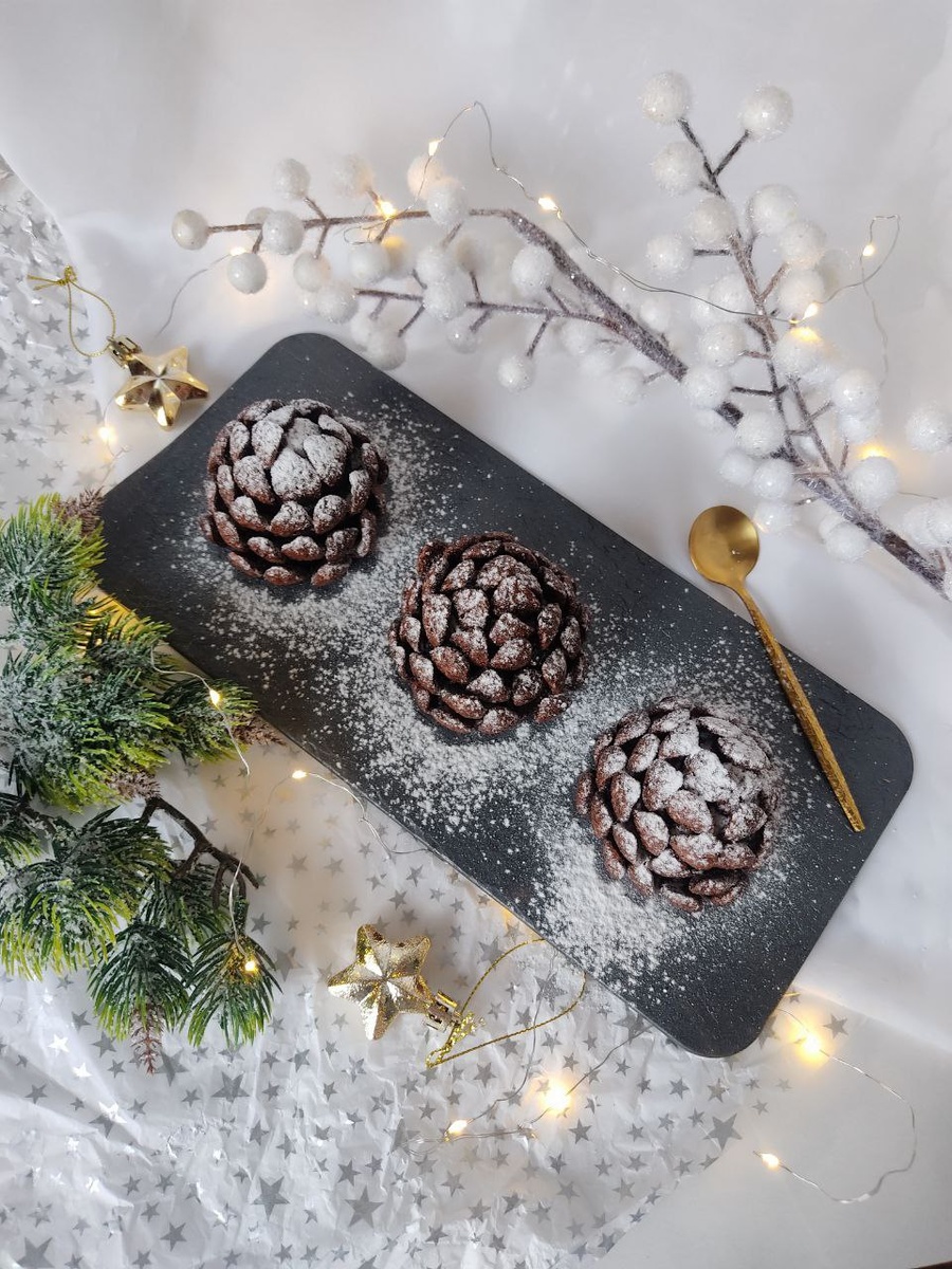 Пирожные «Картошка» в новогоднем стиле — «Шишки в снегу