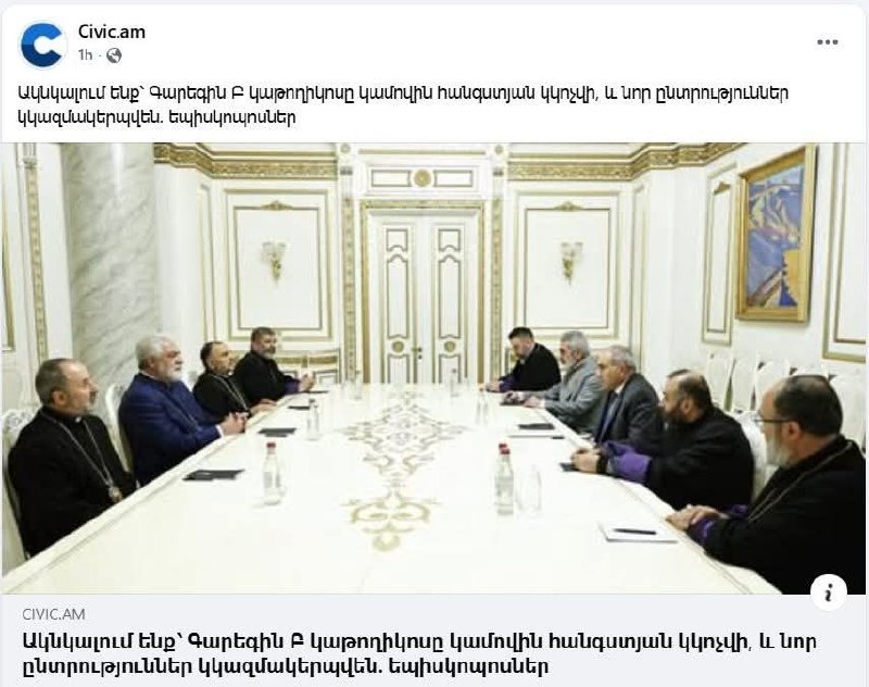 🔴🔴 «Նիկոլը պարտվում է եկեղեցում». Ռոբերտ Մարգարյան «Եկեղեցու դեմ պայքարը նիկոլը սկսեց Վեհրանը կամավորներով ազատագրելու կոչով, շարունակեց Վեհափառի հրաժարականի պահանջով ու հիմա արդեն հանգել է կամովի հանգստի կոչվելու և նոր ընտրություն թույլատրելու աղերսանքով, այն էլ իր հետ միասին Վեհափառի ու հայ ժողովրդի կամքի դիմաց կզած ողորմելի եպիսկոպոսների օգնությամբ: Եկեղեցու դիմաց ՊԱՐՏՎԱԾ նիկոլը»: