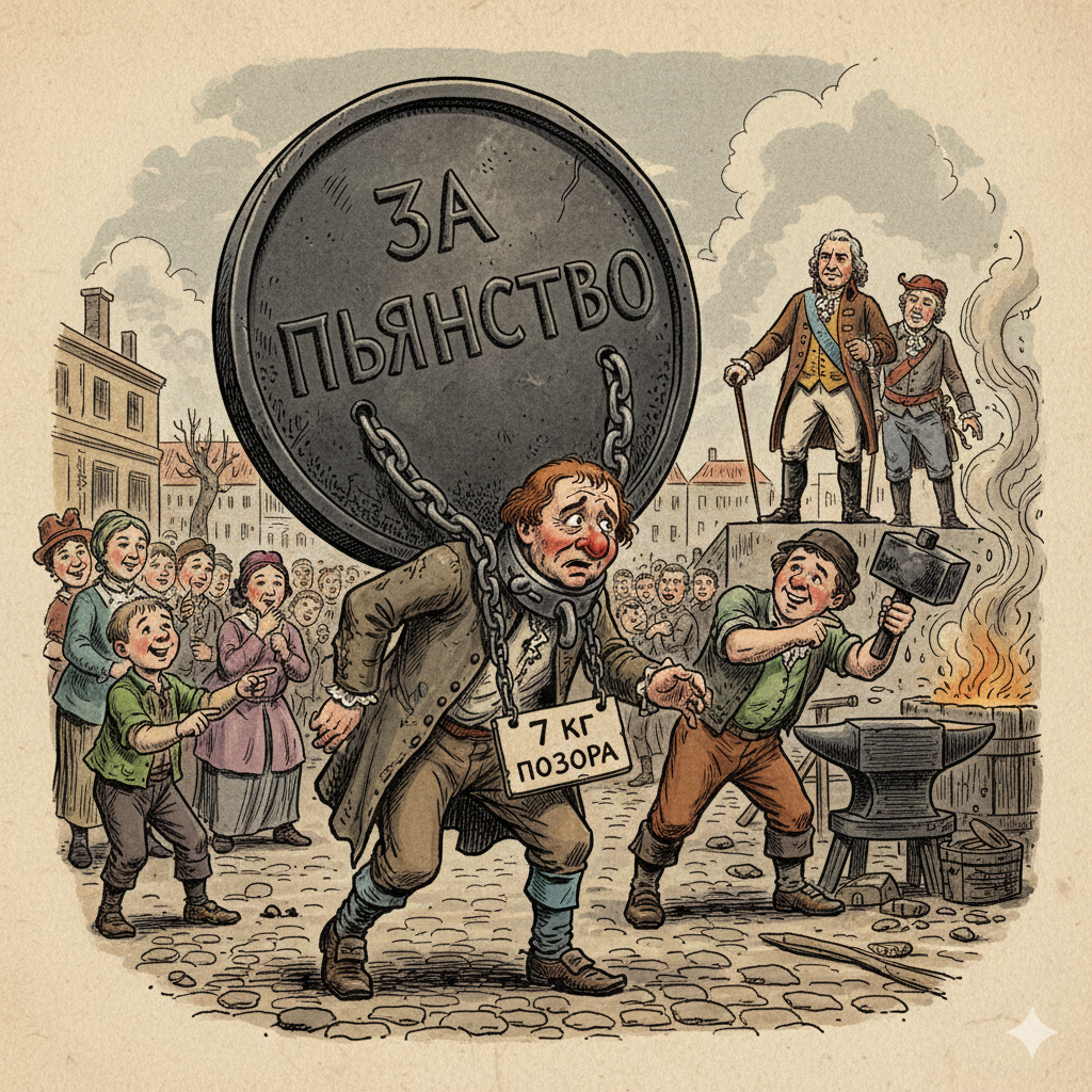 Забудьте про рассол, активированный уголь и модные детокс-марафоны. В Российской империи XVIII века существовал только один способ борьбы с похмельем и запоями — хардкорный метод Петра I. Император, как известно, любил все делать с размахом: если рубить бороды, то с мясом, если строить флот, то на болоте, а если бороться с пьянством — то с помощью самой тяжелой медали в мировой истории. Сегодня в рубрике «Без царя в голове» рассказываем, как выглядел «орден», который никто не хотел получить, и почему этот метод был верхом царского лицемерия. Представьте: вы простой русский мужик (или барин, тут без разницы), который вчера немного перебрал в кабаке. Вы просыпаетесь не в вытрезвителе, а в полицейском участке. И вместо штрафа вам на шею вешают ЕЁ. Медаль «За пьянство». Это вам не какая-то побрякушка из фольги. Это был настоящий чугунный монстр. Медаль вешали в полицейском участке. Причем вешали на совесть — цепи заклепывали так, что самостоятельно снять эту прелесть было невозможно. Ср