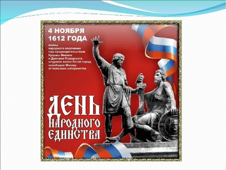 Взято из открытых источников. В этот день с иконой Казанской Богоматери, чей праздник также, отмечают в этот день, Православные Русские люди разных сословий, от ремесленников и крестьян до купцов и дворян объединились и вступив в ополчение гражданина Кузьмы Минина и князя Дмитрия Пожарского освободили Москву от Польско - Литовских интервентов Речи Посполитой. Ополчение также, вооружалось на собранные всем миром средства. В память об этом событии, в Москве, на Красной площади установлен памятник. Всё это произошло вопреки предательству так называемой " Семибоярщины", которая хотела слить страну, также, как потом, в 1990 - х "Семибанкирщина". И этого нам никогда нельзя забывать, чтобы на одни и те же грабли не наступать, а то и вовсе, страну не потерять, оказавшись для кого - то людьми второго сорта, как того хочет наша "пятая колонна", потому что ей всё равно кому зад лизать. Потому что, памятник - это для того, чтобы помнили. А то, не так давно молодой либераст (Никулин А.) на одной и