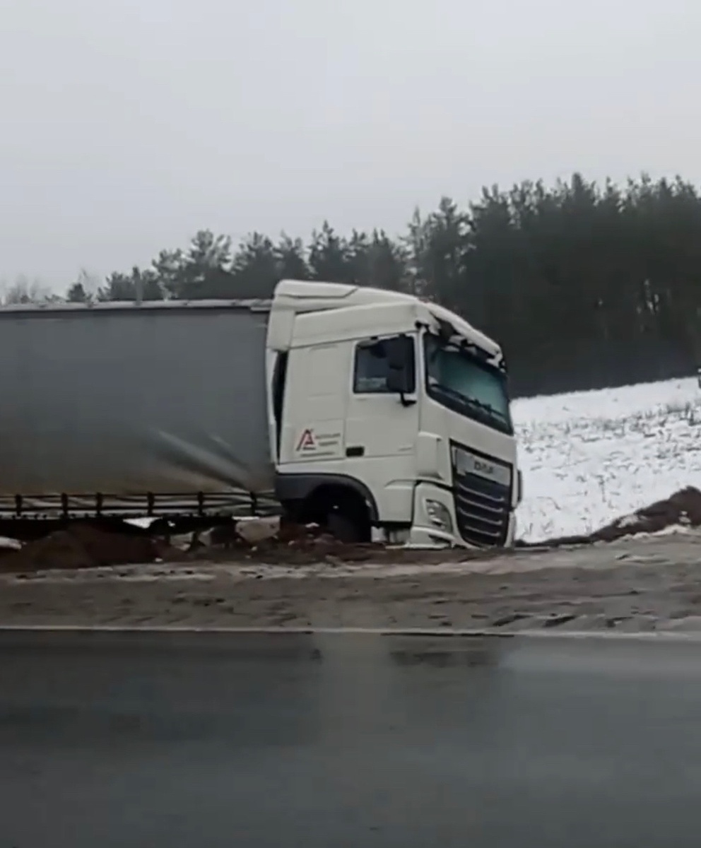Будьте осторожны: фура со вчерашнего дня застыла на трассе в Карелии
