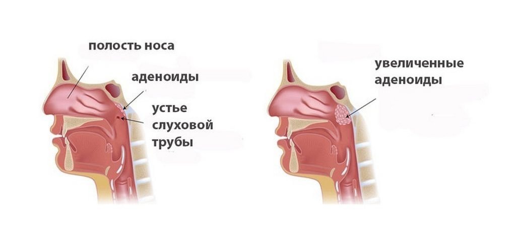 Аденоиды в человеческом организме выполняют функцию защиты, являются неким барьером от вирусов и инфекций. Но когда нагрузка на иммунитет становится слишком высокой, аденоиды начинают увеличиваться и вырабатывать очень много слизи для того, чтобы очистить/защитить наши органы дыхания. Со временем эти разросшиеся ткани начинают перекрывать полностью дыхательные пути в носовой полости. Что и приводит к ротовому дыханию – то есть, когда человек (ребёнок) постоянно дышит ртом, рот открыт даже когда острую фазу заболевания пролечили. Также появляется храп во время сна; могут начаться периодические остановки дыхания во время сна – синдром апноэ; гнусавость речи – назализация (будто говорит в нос). В данной ситуации язык находится внизу ротовой полости. А так как язык самая сильная мышца в организме человека, именно благодаря его росту, и благодаря тому, что он находится (при закрытом положении) вверху ротовой полости (можете прочувствовать это сами: закройте рот, сглотните слюну, и пронаблю