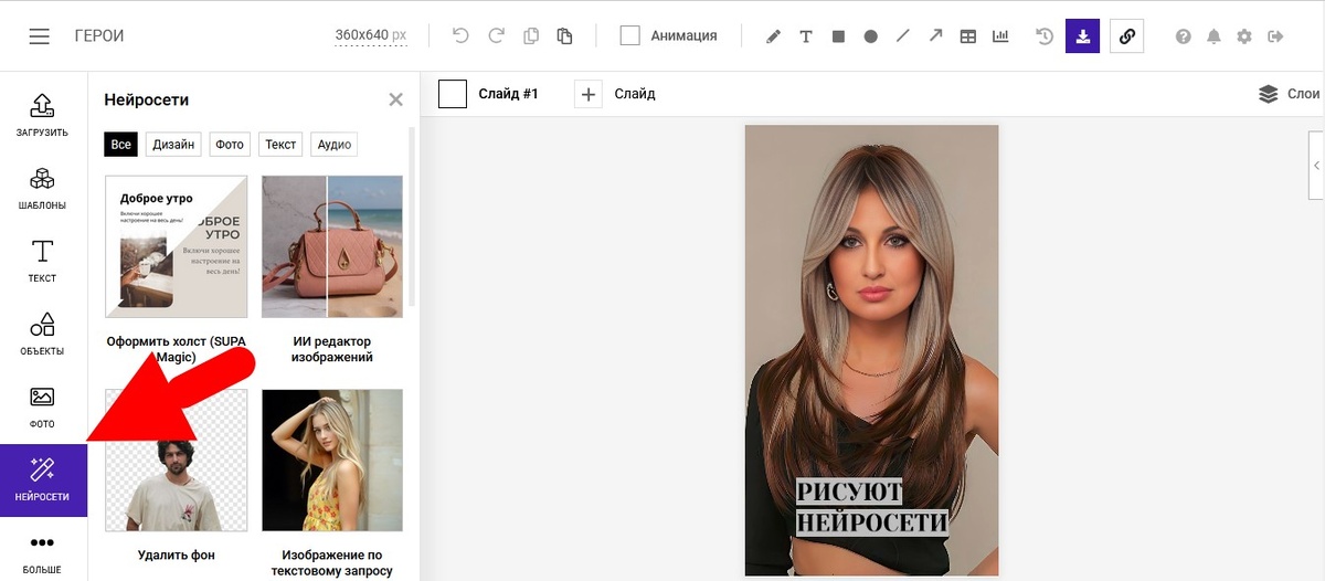 В редакторе SUPA появился мощный инструмент, который существенно упростит работу с изображениями и вдохновит на новые творческие решения. Теперь вы можете управлять редактированием картинок с помощью текстовых команд — никаких сложных манипуляций, масок или выделений. Искусственный интеллект сам определяет объекты и выполняет задачи быстро и точно. Просто опишите желаемые изменения, и ИИ сделает всё за вас — легко, как диалог с помощником. Кроме того, теперь можно объединять несколько изображений в одно, создавая уникальные композиции за считанные минуты. Руководство к использованию 1. Чтобы воспользоваться новыми возможностями, перейдите в раздел «Нейросети» через левое боковое меню и выберите «ИИ-редактор изображений». 2. Загрузите изображение и опишите, что вы хотите изменить на этом изображении. Для эксперимента я использовала вот это изображение: В специальном поле я описала, что хочу видеть на изображении: "Девушка на фоне крупного мегаполиса" 3. Нажмите кнопку <Редактирова