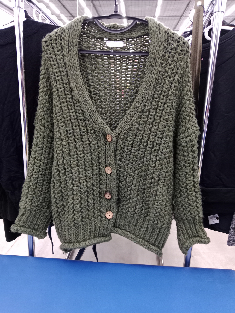 По фото видно хорошо как светится кардиган, но вблизи за счёт объемной вязки не так заметно. Был бы цвет другой, этот не всем подойдёт.