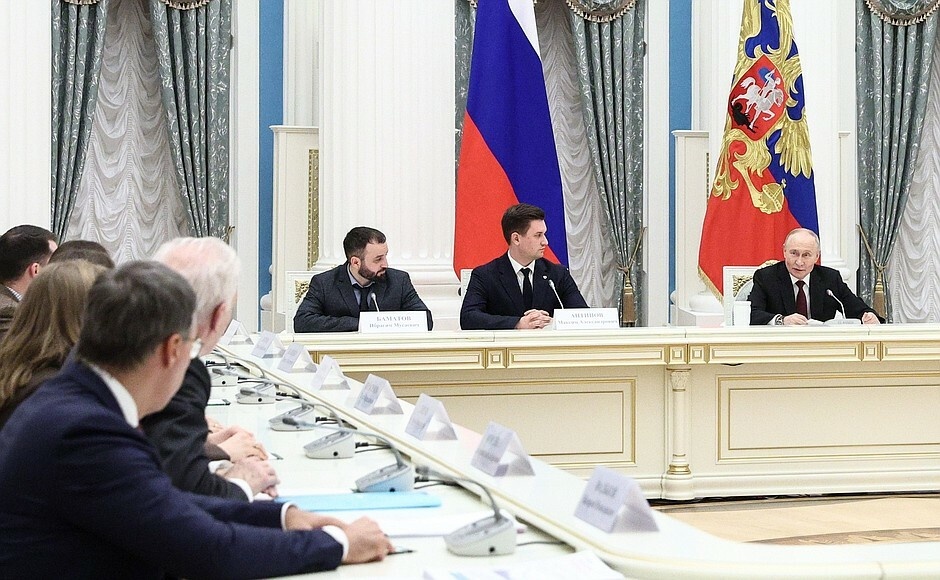 В Екатерининском зале Кремля проходит встреча Владимира Путина с участниками V Конгресса молодых учёных. В мероприятии также принимают участие помощник Президента Андрей Фурсенко и Министр науки и высшего образования Валерий Фальков. Стенограмма мероприятия будет опубликована. Источник: http://www.kremlin.ru