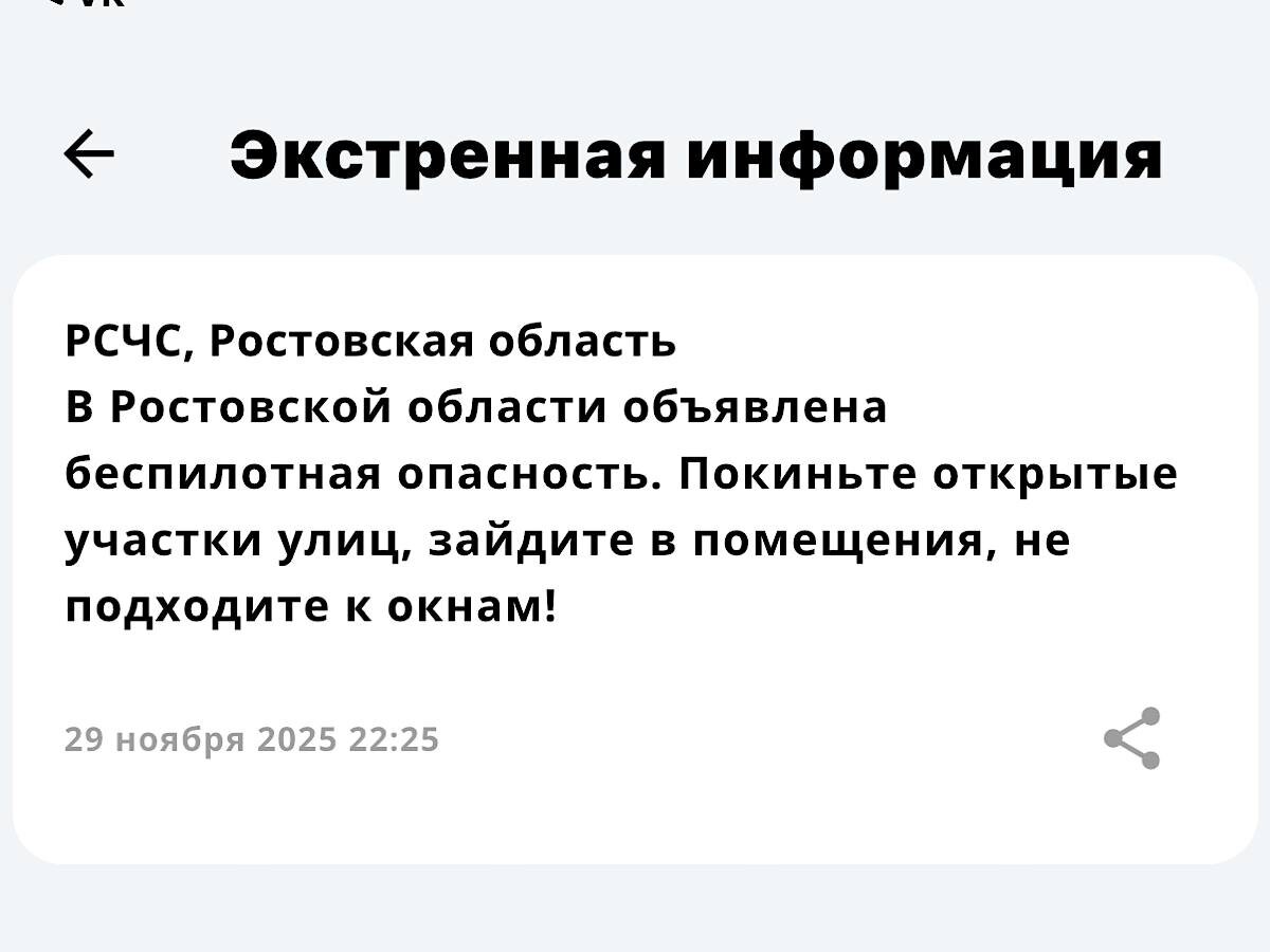 В Ростовской области объявили беспилотную опасность ‼️