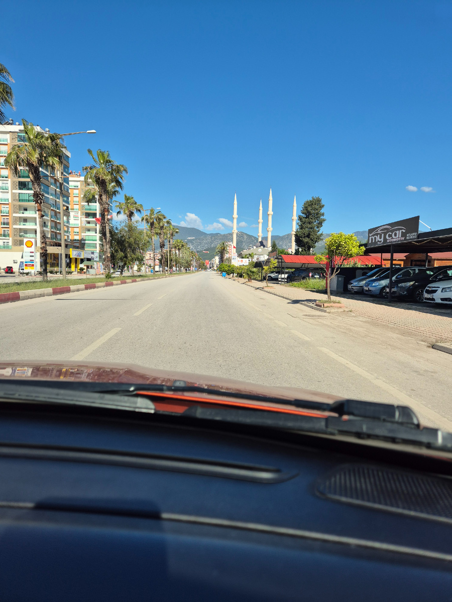 Первый пункт сегодняшнего марш-броска - городок Демре. Ехать до него часа полтора по шикарной трассе D400. Сначала она идёт по горам (тут своё очарование), а потом - потрясающе живописными серпантинами вдоль моря.