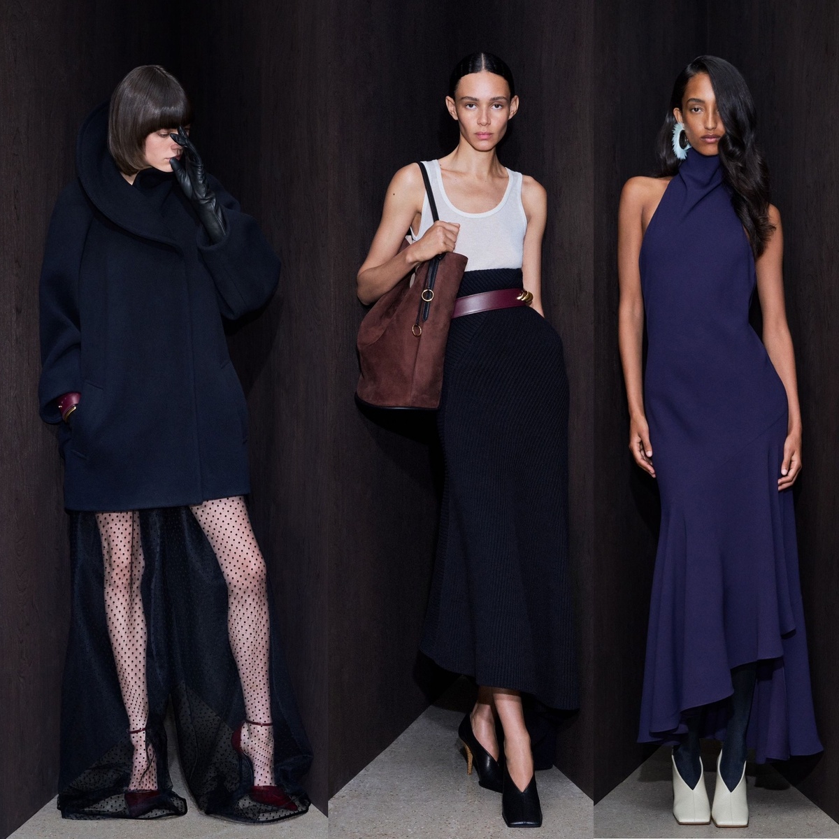 Представьте себе мастерскую скульптора, где вместо мрамора и бронзы — тончайший атлас, мягчайшая шерсть и полупрозрачный шёлк. Именно так можно описать творческий процесс Питера Мюльера в доме Alaïa. Его работа — это не просто мода. Это диалог между искусством и повседневностью, где каждый силуэт будто вылеплен вручную. До сих пор круизные коллекции Alaïa жили своей тихой жизнью — без громких показов, но с преданной аудиторией, которая ценила их за безупречный крой и тактильную притягательность. Однако Resort 2026 меняет правила игры. Мюльер открывает дверь в свою творческую лабораторию, демонстрируя то, что он называет «архетипами» — базовые формы, рождённые на подиуме, но переосмысленные для реальной жизни. МД Alaïa всегда славился своей архитектурной точностью — линиями, которые будто вычерчены циркулем, и объёмами, напоминающими современные скульптуры. В новой коллекции эта строгость смягчается, но не теряет своей сути. Возьмём, к примеру, серое платье‑водолазку. На первый взг
