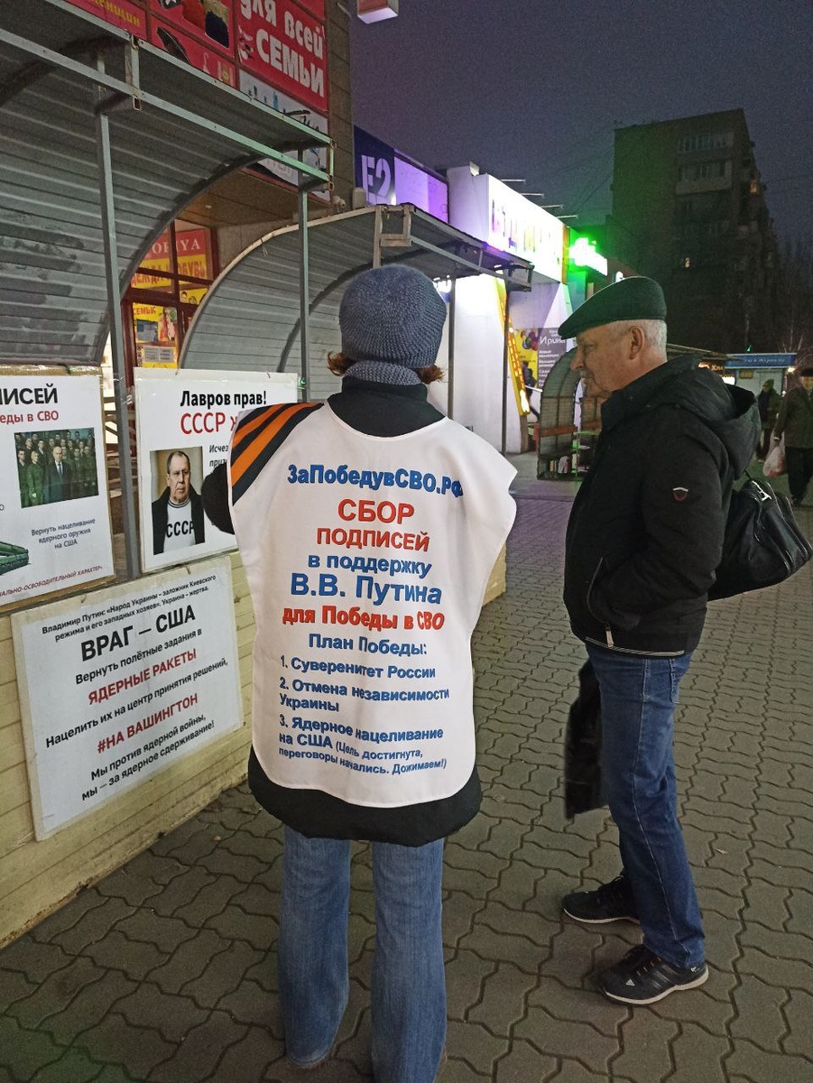 Активисты г. Волжский (Волгоградская область) 24 ноября 2025 года Алексей и Анна провели информационную акцию За Победу в СВО 🔹За два часа раздали 400 газет Национальный Курс. 🔹Анна провела одиночный пикет, на котором собрала 20 подписей за наделение чрезвычайными полномочиями президента Владимира Путина для проведения реформ по суверенитету. Поддержать В.В. Путина в его курсе на восстановление суверенитета можно на сайте http://ЗаПобедувСВО.РФ 🔹Также собрала 20 подписей за отмену в суде независимости Украины, присоединиться к миллионному судебному иску для расследования госпереворота 90-х годов в СССР можно по ссылке ПЛАН ПОБЕДЫ в СВО👇 Убрать США и НАТО с территории СССР и закончить СВО Победой возможно, отменив незаконное признание незаконной независимости Украины и нацелив ядерное оружие на врага — США. Для реформ нужно наделить Владимира Путина дополнительными полномочиями.