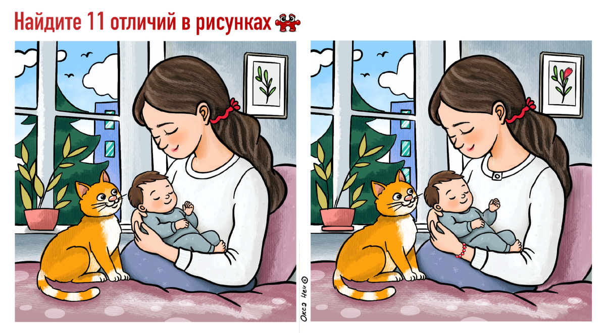 Милый тест с 11-ю отличиями в День матери. Для самых внимательных