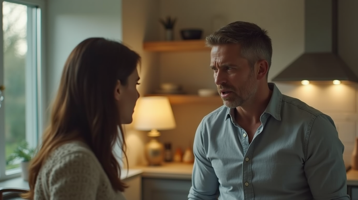 Алексей шагнул ближе, опустив телефон на стол с таким стуком, что ложка в сахарнице слегка звякнула. Он был высоким, широкоплечим мужчиной под сорок, с теми морщинками у глаз, которые появлялись, когда он смеялся над её шутками, и с седеющими висками, которые делали его старше своих лет. Работал инженером на заводе в промзоне, где дни тянулись в ритме станков и отчётов, а вечера – в ожидании тихого ужина вдвоём. Но сегодня его лицо, обычно открытое и доброе, искажала тень беспокойства, которая нарастала неделями.