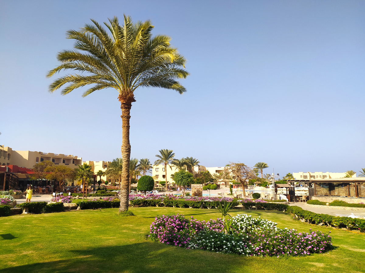 Трекинг - это наше всё, но иногда хочется и отдохнуть в комфорте у моря. Красное море – одно из самых красивых морей с коралловыми рифами и яркими рыбами. Решено: едем в отель «всё включено» в Египет. Взяли неделю отдыха с 20 по 27 ноября 2025 года в Onlines tours.ru. Вполне достойное турагентство. 147 тысяч на двоих. Это с возможностью выбрать полет. Мы выбрали ночной рейс Аэрофлота туда и дневной обратно. Прилетели вовремя около 7 утра. А дальше начался сюрр. С трудом нашли нашего представителя. А потом ещё долго ждали прилета другого самолёта. Всё вместе, провели в аэропорту около 4,5 часов. И ещё 3.5 часа занял путь до отеля. Поскольку он расположен в 250 км от Хургады. Зато море чистое, замечательный коралловый риф и тишина. Нас четверо, и нам дали 2 номера на первом этаже. Номера просторные с террасой, с которой можно выходить на улицу. Всё чисто. Отель небольшой, но и не маленький. Это оазис в пустыне. Везде зелень, пальмы, цветы. Есть 4 бассейна, но мы там не купались. Ведь