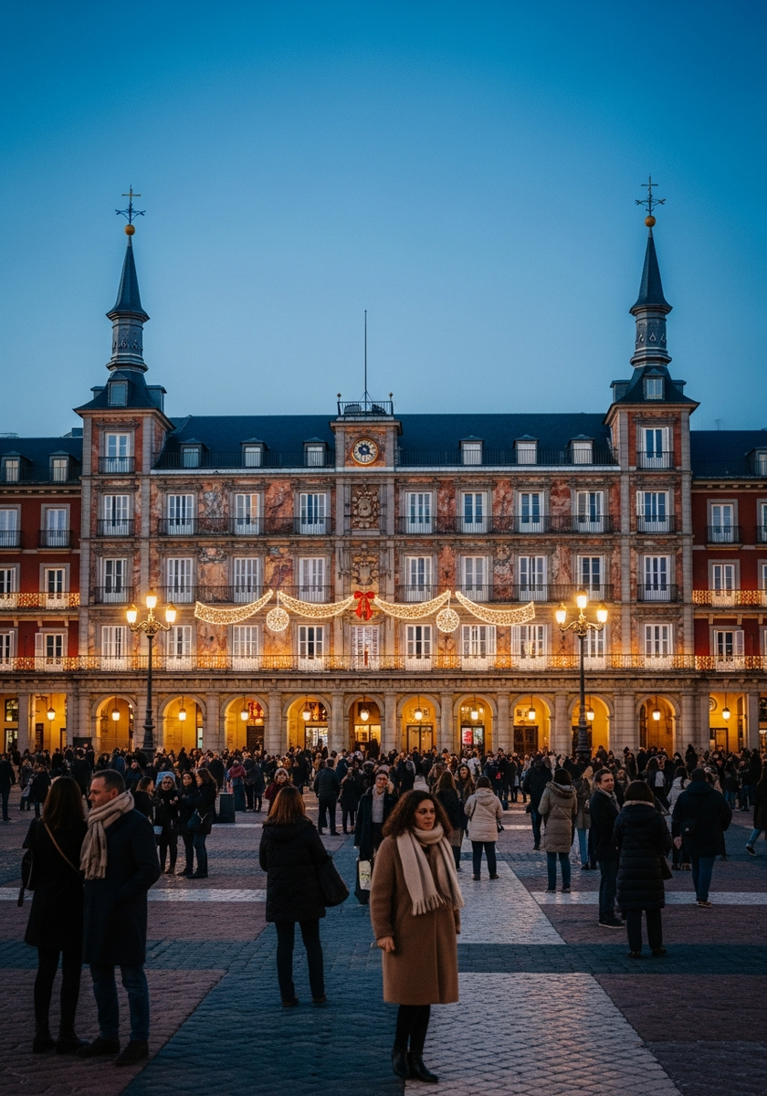 Воздух пропитан ароматом горячего шоколада и чуррос, на площади выступают уличные артисты и музыканты. Это идеальное место для семейного отдыха в декабре. Сама площадь Пласа-Майор была построена в начале XVII века при короле Филиппе III, и в ее центре возвышается конная статуя монарха.